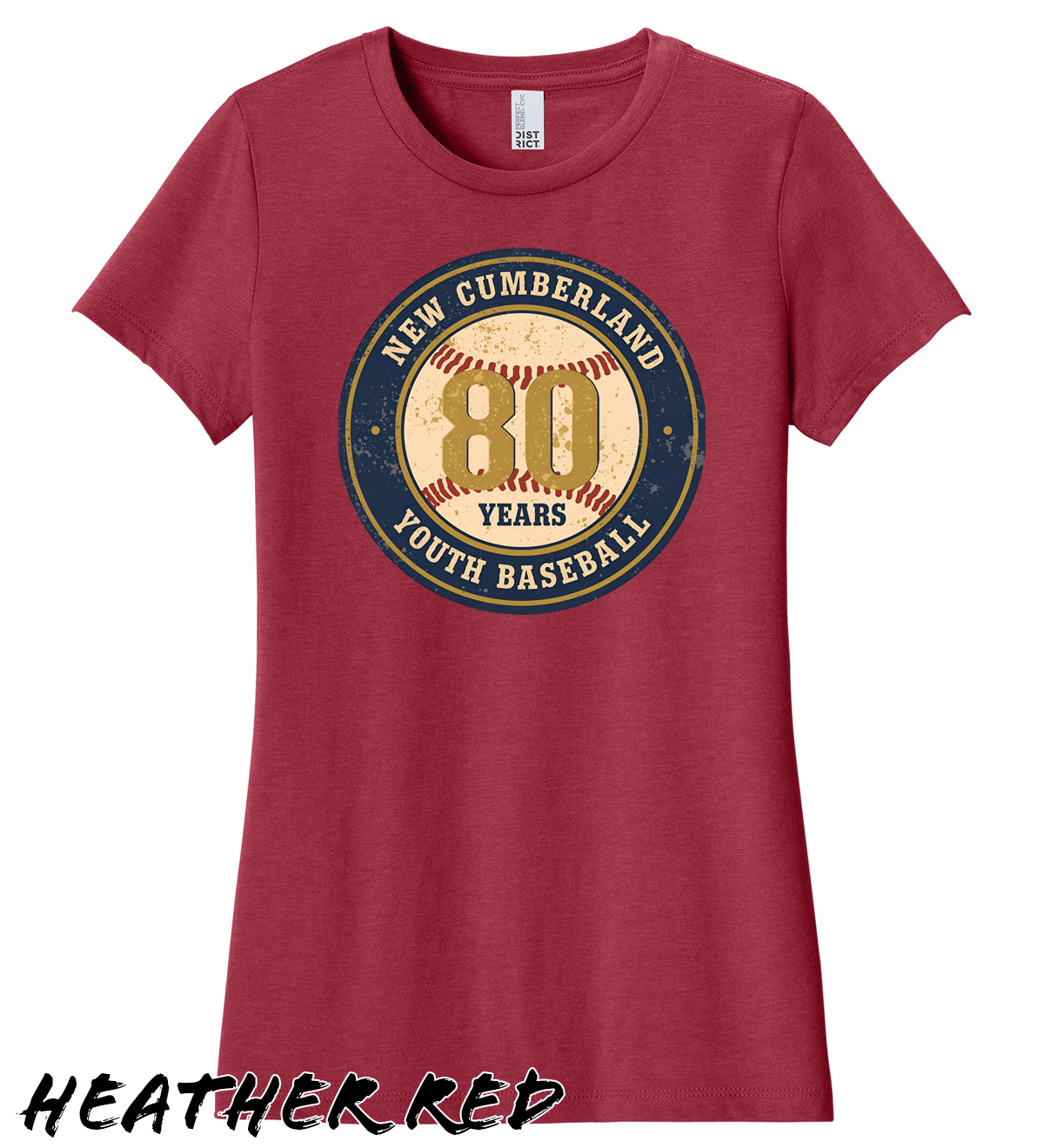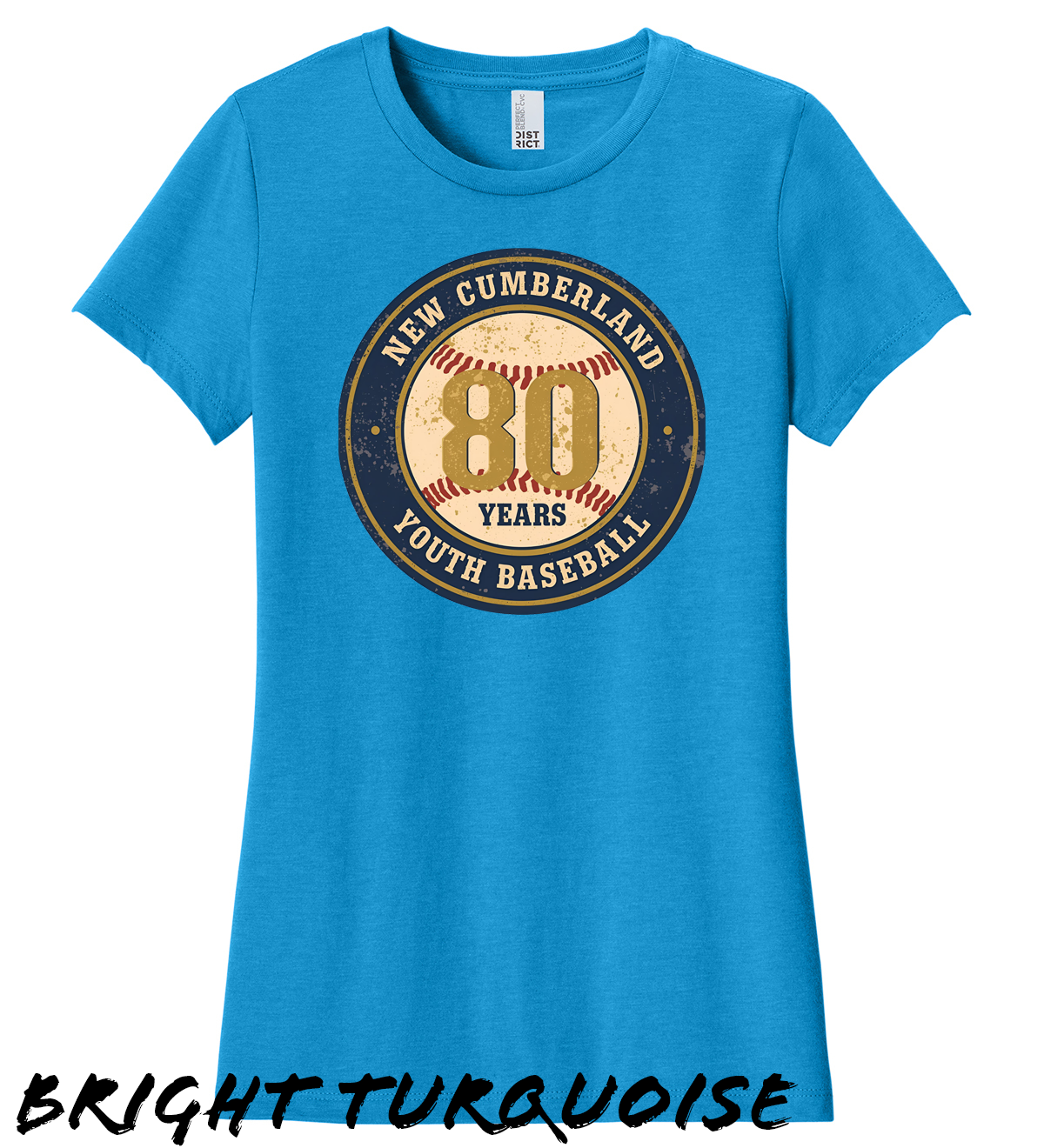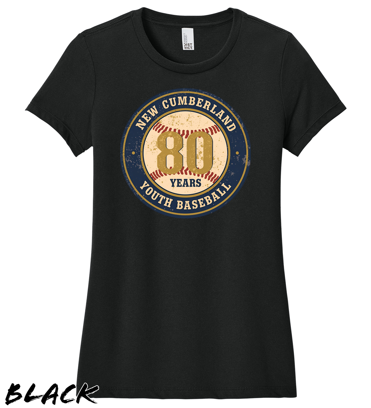 Celebrate 80 Years of New Cumberland Youth Baseball with this 4.3 oz Women’s Crew Shirt!  This tee is available in 11 colors, all featuring the New Cumberland Youth Baseball 80 Years logo on the front.