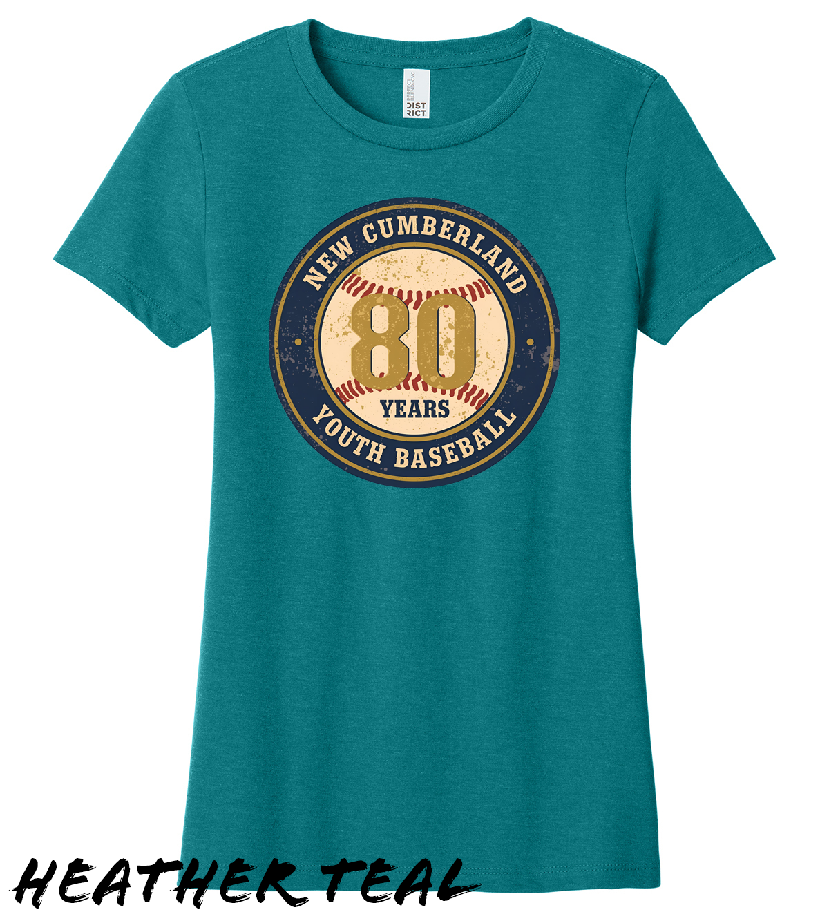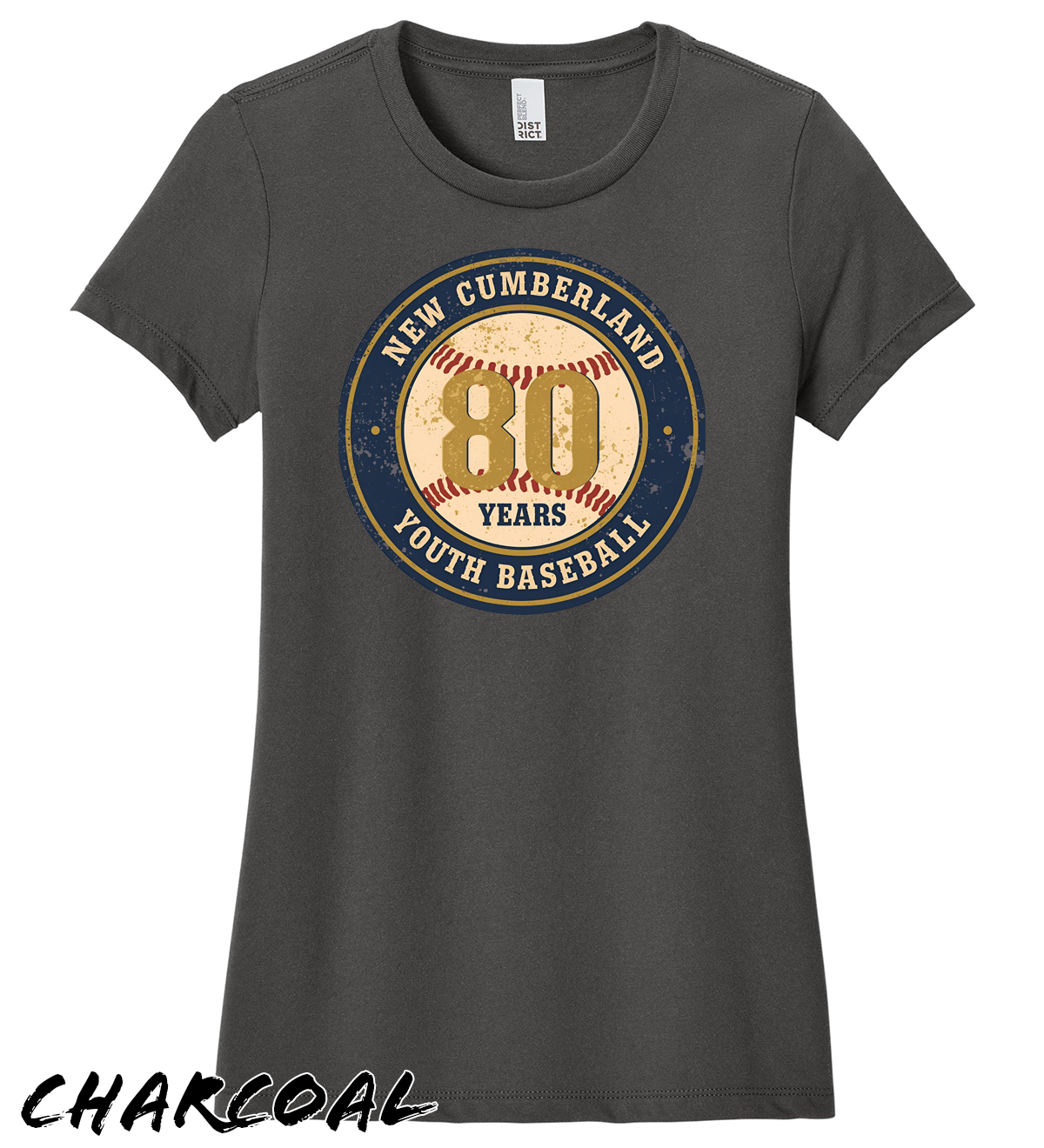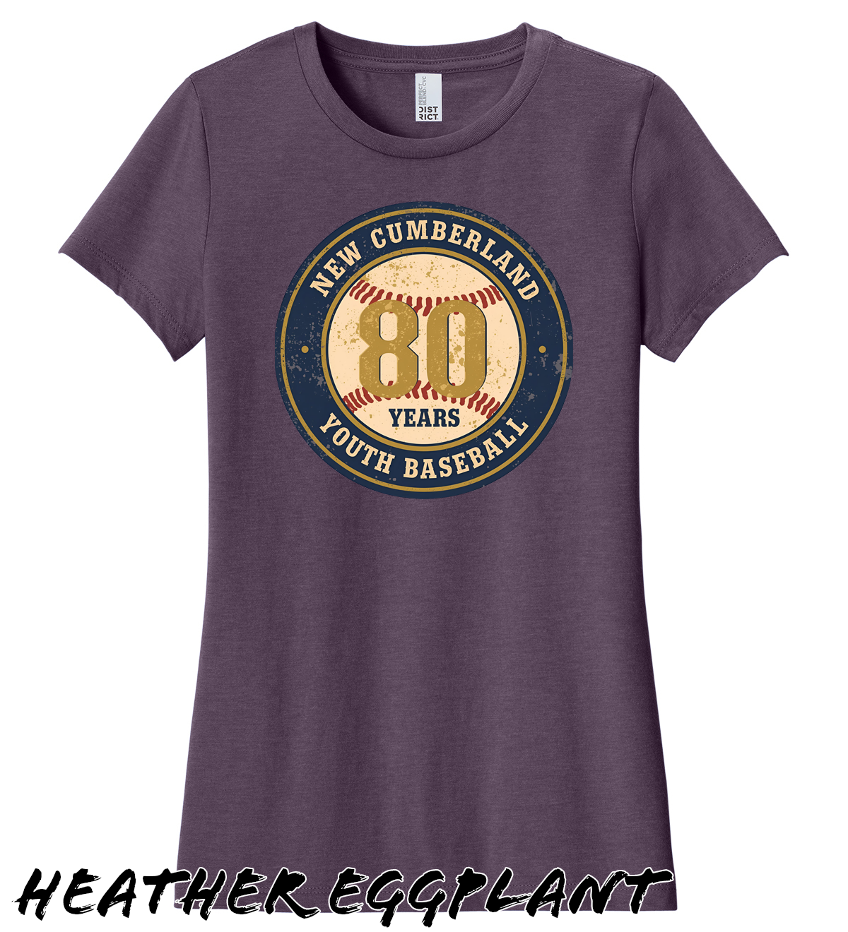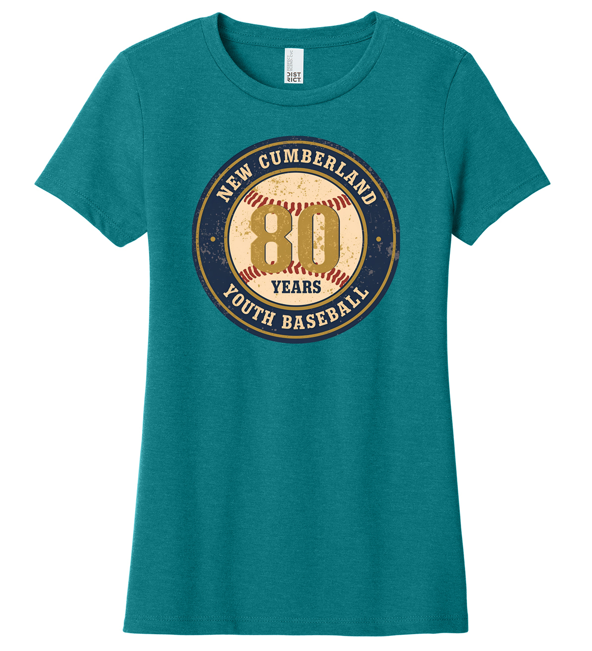 Celebrate 80 Years of New Cumberland Youth Baseball with this 4.3 oz Women’s Crew Shirt!  This tee is available in 11 colors, all featuring the New Cumberland Youth Baseball 80 Years logo on the front.